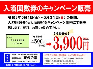 「大人入浴回数券 10回券」 を 割引キャンペーン販売いたします。